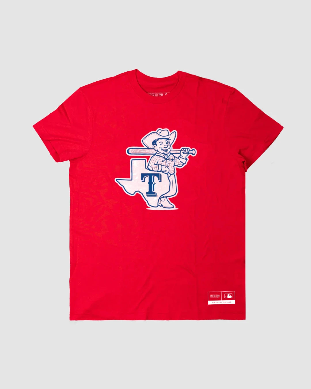 – Vintage Baseballism bat screened on back right of the garment